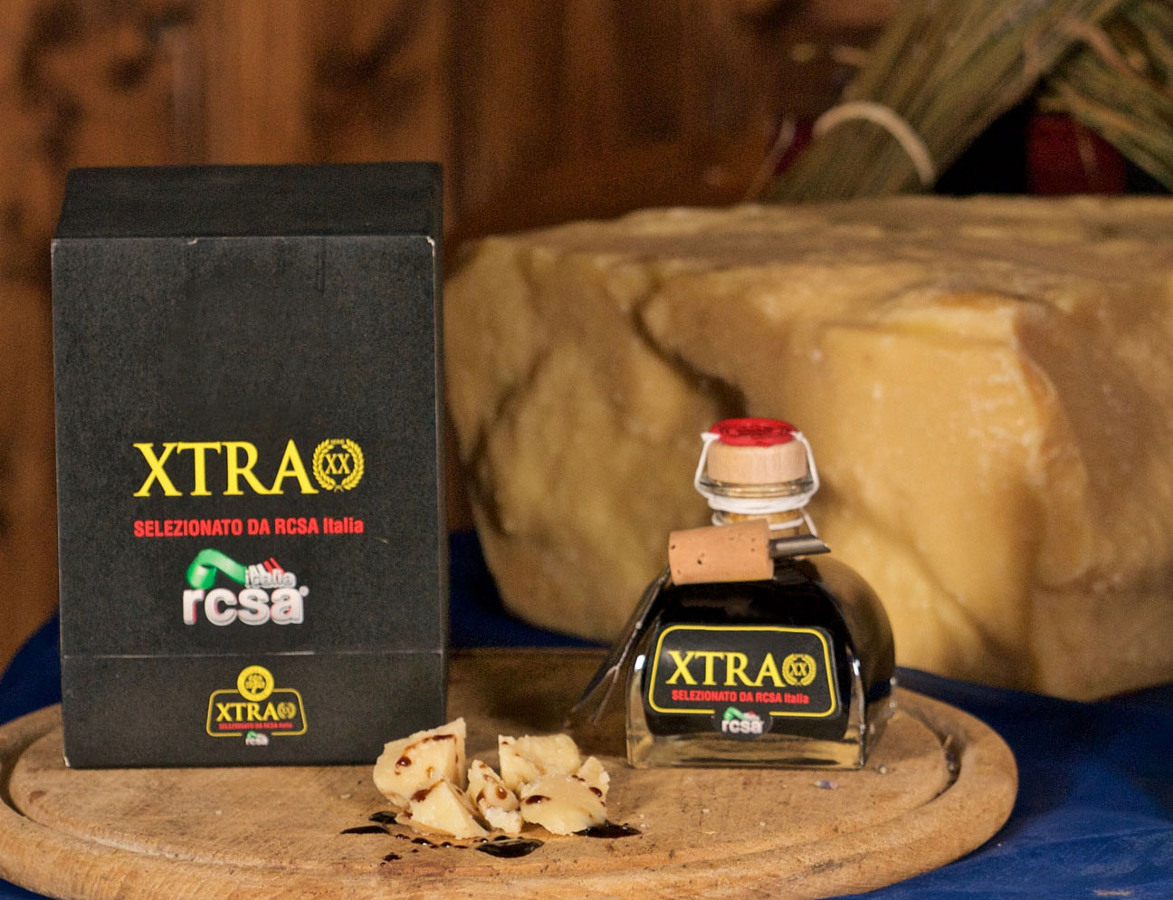 - 1 confezione di Condimento Balsamico XTRA vent’anni, dal sapore dolce ed equilibrato, squisito anche da solo ma ottimo con il Re dei Formaggi, il Parmigiano.