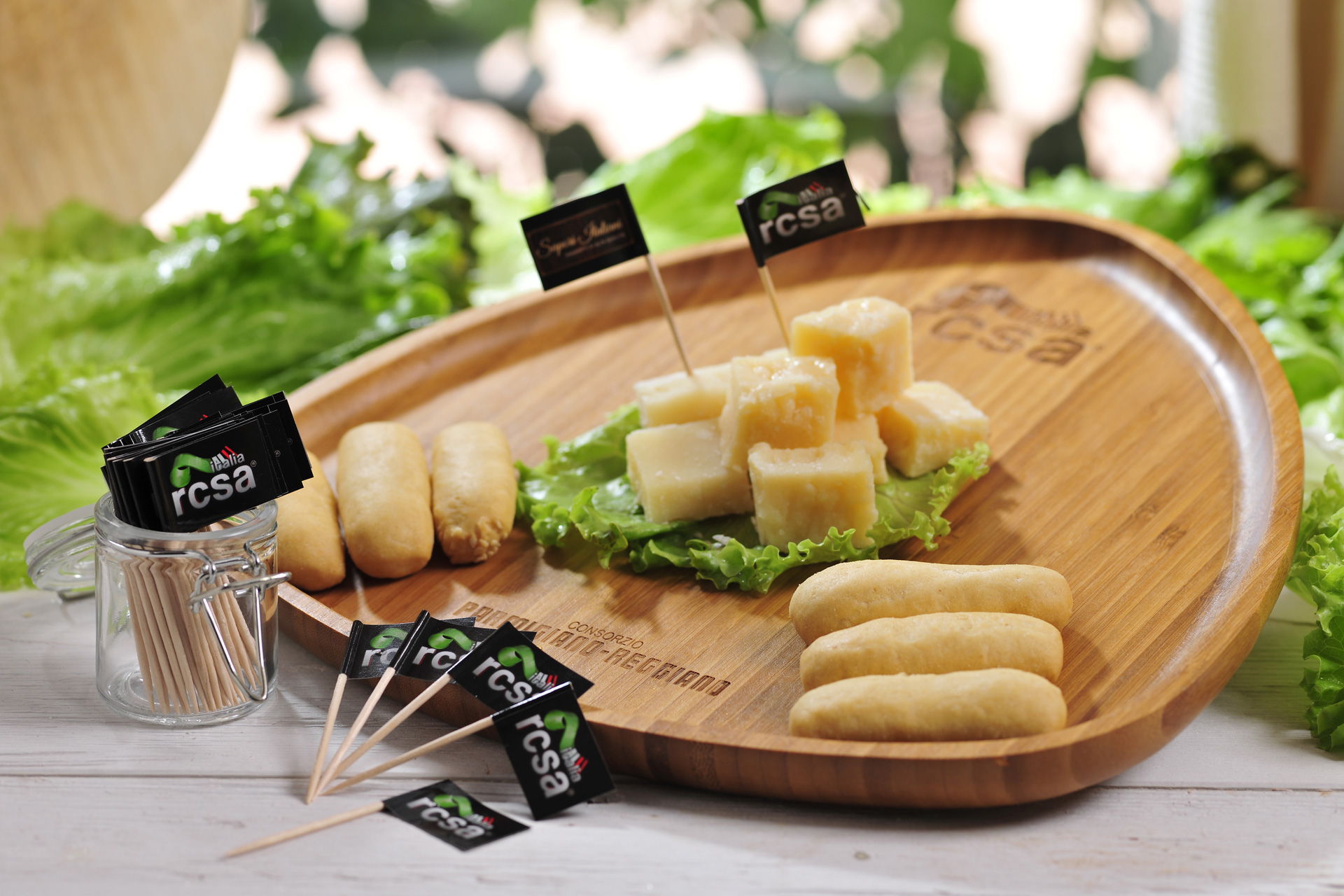 Una cornice elegante per promuovere e veicolare i prodotti a marchio RCSA Italia. Un tagliere in legno con logo impresso a caldo dalle linee semplici ed eleganti, richiamo a un territorio dalla vocazione agricola.